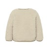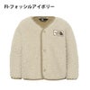 表面にはかさ高があり柔らかな毛足のボアフリース、肌面には滑らかな肌触りのマイクロフリースをボンディングした生地を採用しています。フロントはドットボタンで着脱がしやすく、袖口や裾、襟はすっきりとしたパイピング仕様です。