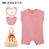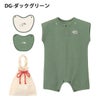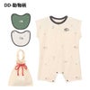 ロンパースはゆったりめのシルエット。二次利用が可能な巾着袋入りで、手提げ袋として使用することも、手提げ部分をベビーカーに掛けることもできます。環境問題に配慮しつつ、ギフトにも適したアイテムです。