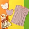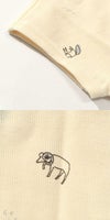 短いパイル地は引っかかりにくく、耐久性があります。生地には適度な厚みがあり、優しく包むような肌触り。汗をしっかりと吸い取りやすいのも特徴です。ロンパースは股部分がボタン開き。スタイはドットボタンでロンパースに直接装着するタイプで、赤ちゃんが寝ている状態でも前から簡単に付け外しができます。