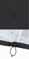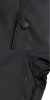 はっ水加工を施したナイロンオックス生地は適度な厚みで、上品な光沢感が特徴です。裏地は軽く着心地のよい起毛トリコット生地。フロントのドットボタンは、開衿で着用しても襟の形が美しい位置に配置しています。