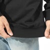 裏起毛で暖かみのあるコットンのスウェット生地を採用しています。特殊な編み機を使用して、ロゴ部分をジャカードで表現。肌なじみがよく、プリント特有の硬さもありません。手軽に洗濯できる、スウェットならではのイージーケア性も魅力。袖と裾、襟はフィット感のよいリブ仕様。