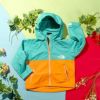 軽くて丈夫な生地にはっ水加工を施した、定番のウインドブレーカー。フードはスナップボタンで取り外しが可能で、外したときにはボタンを襟の中にしまうことができます。UVケア(UPF15-30、紫外線カット率85%以上)機能付き。静電気の発生を抑制する静電ケア設計を採用しています。左前身頃内側に記名ラベル付き。豊富なカラーバリエーションも魅力です。