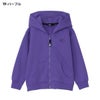 フードには立体刺繍で大きくロゴを配置して、後ろ姿のアクセントにしています。親子でお揃いのコーディネートが楽しめる、大人共通デザインです。