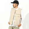 秋冬のキャンプシーンから普段使いまで、さまざまなシーンで活躍する、中わた入りベスト。表地はコットンライクなポリエステル生地を採用し、マットな風合いに仕上げています。中わたにはストレッチ性のある薄中わたを採用。表地と裏地ともポリウレタンを使わないメカニカルストレッチ素材でより軽量化が実現し、上半身の動きにスムーズに追従します。クラシカルなバッフルが特徴。フロントに配置したメタルのボタンもレトロな雰囲気を演出しています。両サイドにファスナーポケット、左胸にはフラップ付きのポケットを配置。静電気の発生を抑えた静電ケアに配慮。コンパクトに収納でき、携行に便利なスタッフサック付きです。