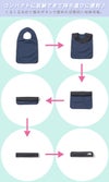 コンパクトに収納できて持ち運びに便利な、防水素材のベビー食事用エプロン。裾のドットボタンを留めると、食べこぼしを受けるポケットが組み上がる仕様です。ドットボタンをはずせば1枚の平たい布状になるので、洗濯しても乾きやすくイージーケア。乾きやすさを高めるため、裾はバインダーなしに仕上げています。くるくる丸めて裾のボタンで留めれば筒状に収納可能。キャンプなどアウトドアでの飲食時に活躍するアイテムです。