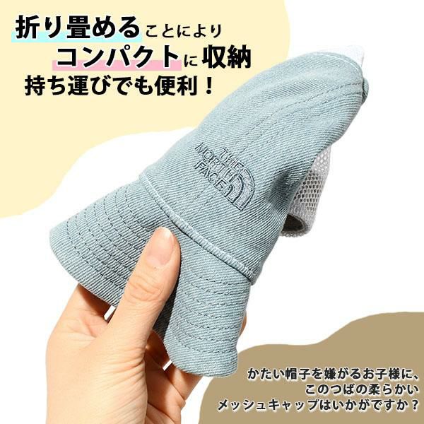 ネコポス発送!送料無料 折りたためる ノースフェイス 子供 メッシュキャップ THE NORTH FACE Baby Denim Mesh Cap キッズ ベビー デニム メッシュ キャップ 帽子 幼児 1歳 2歳 NNB02515 2025春夏新作