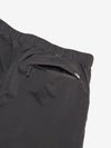 細番手の糸を高密度に織り込んだ生地は、なめらかで上質な印象。適度なストレッチ性も持ち合わせています。生地にははっ水加工を施し、多少の雨や汚れに対応。両サイドのポケットに加え、右ヒップにもファスナーポケットを配置。ウエストはウェビングベルト仕様です。UVプロテクト(UPF50+、紫外線カット率95%以上)機能付き。裾のドローコードでシルエットの調節が可能です。