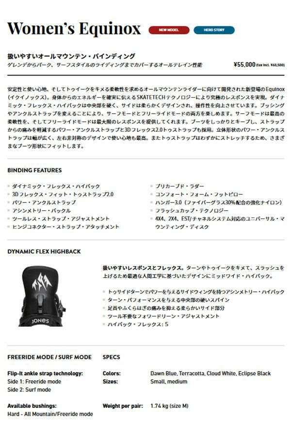 他の画像を見る スノーボード ビンディング JONES ジョーンズ バイン バインディング EQUINOX スノボ用 レディース スノボー BINDING 婦人 2025-2026 25-26 25/26 送料無料 JONES ジョーンズ バインディング EQUINOX イクイノックス レディース スノーボード フリースタイル オールマウンテン BINDING バイン ビンディング 婦人用 69125112 2025-2026冬新作 25-26 25/26 10%off 送料無料 メーカー希望小売価格 ¥ 50,600 のところ エレスポ価格 ¥ 45,540 税込 カートに入れる お気に入りに登録する
