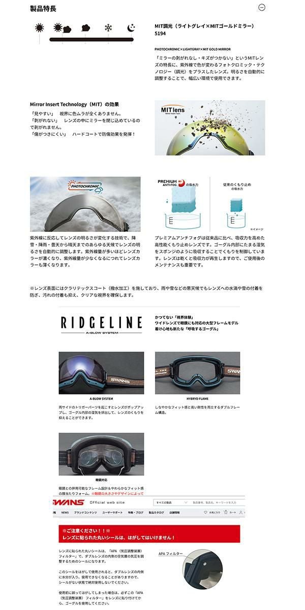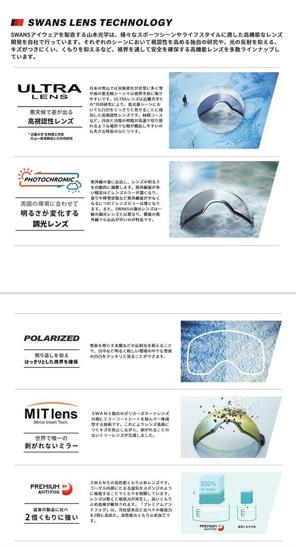 スノボ ゴーグル SWANS スワンズ RIDGELINE リッジライン スノーボード 球面 レンズ メンズ レディース ウインタースポーツ 送料無料 スノーゴーグル SWANS スワンズ RIDGELINE リッジライン 調光 プレミアムアンチフォグ レンズ ユニセックス スノボ スノー ゴーグル 球面レンズ 20%off