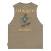 ヘビーウェイトのスリーブレスシャツ。 バックにスカルがスケートをするヴィンテージ調のグラフィックをプリント。遊び心を感じさせる一枚です。 ピグメント加工を施し、ヴィンテージのような風合いに仕上げました。 ゆとりのあるオーバーサイズシルエットで着心地も快適です。
