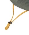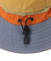 撥水性に優れたナイロンリップストップ生地を使用。頭周りには通気性の良いメッシュ素材を配し、暑い日でも快適なかぶり心地を保ちます。内側のスベリには吸水速乾素材を採用し、肌に触れる部分のムレやベタつきを抑えます。