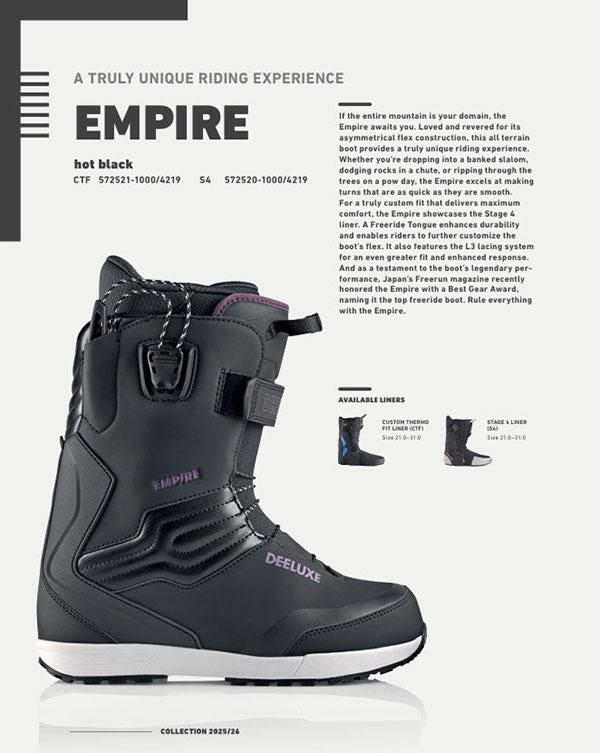 送料無料 ディーラックス DEELUXE スノーボード ブーツ Empire S4 メンズ エンパイア スノボ S4 TF ステージ4 サーモインナー SNOWBOARD 2025-2026冬新作 25-26 25/26 30%off