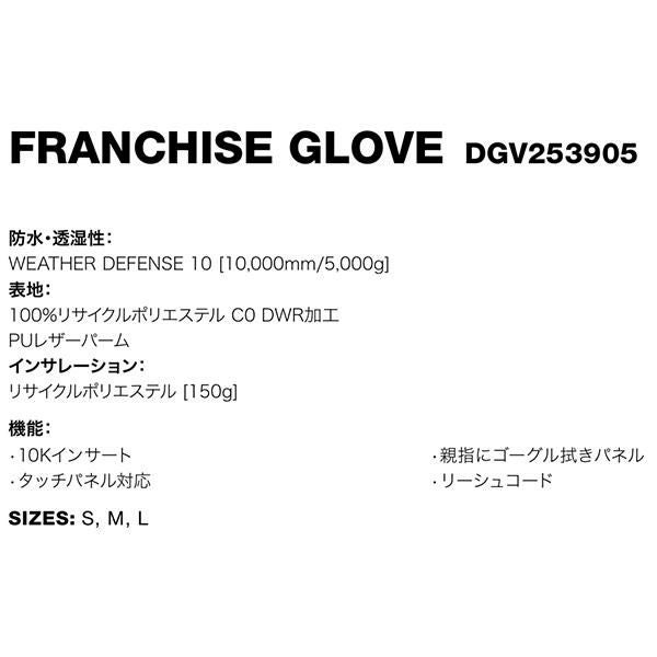 送料無料 スノーグローブ DC ディーシー メンズ FRANCHISE GLOVE 手袋 5本指 スノー グローブ スノーボード スノボ スキー 防寒 ディーシー シュー DGV253905 2025-2026冬新作 25-26 25/26 15%off