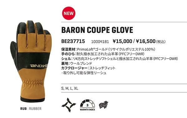 送料無料 スノーグローブ DAKINE ダカイン メンズ BARON COUPE GLOVE 山羊革 手袋 防寒 スノーボード スノボ スキー スノー グローブ 日本正規品 BE237715 BE237-715 20%off