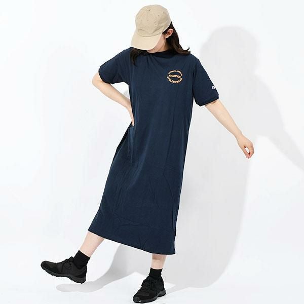 チャンピオン Champion レディース 半袖 ワンピース ネコポス発送!送料無料 現品のみ Lサイズ チャンピオン レディース 半袖 ワンピース Champion ONEPIECE DRESS スリット ひざ下 膝下 2025春夏新作 CW-B315