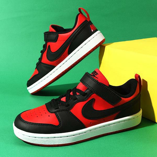 7. 送料無料 ナイキ スニーカー キッズ NIKE コート ボロー LOW リクラフト PS 靴 シューズ 子供 子供靴 子どもスニーカー ベルクロ レッド 赤 ブラック 黒 DV5457 600