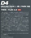 D4はボード上面に採用しているグラスファイバーをコアを挟んでソール側よりもソフトに設定し、上面と下面との弾性率による差をつけることでソフトフレックスながら高反発という相反する性能を両立させています。