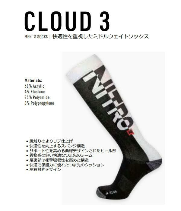 ゆうパケット対応可能! 送料無料 ソックス NITRO ナイトロ CLOUD 3 SOCKS 靴下 スノボ スノーボード 日本正規品 スキー 15%off