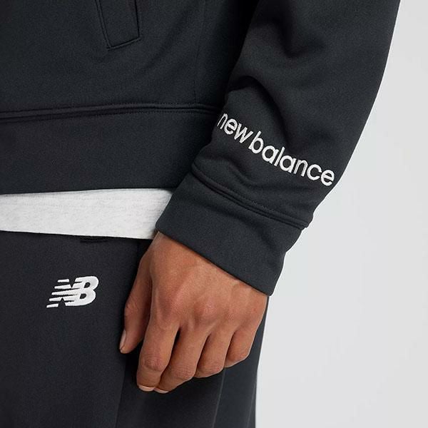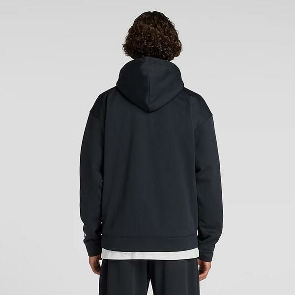 送料無料 ダブルニットフーディ ニューバランス New Balance メンズ 裏起毛 スウェット パーカー フルジップ トップス 長袖 リラックスフィット スポーツウェア トレーニングシャツ ブラック 黒 AMJ53174 2025秋冬新作