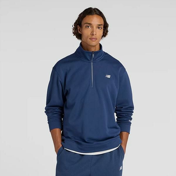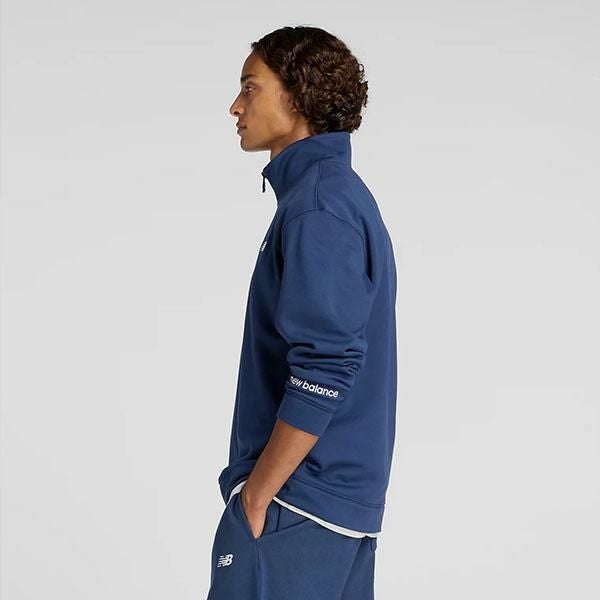 送料無料 ダブルニット ハーフジッププルオーバー ニューバランス New Balance メンズ クォータージップ プルオーバー 裏起毛 スウェット トップス 長袖 リラックスフィット スポーツウェア トレーニングシャツ ネイビー 紺 AMT53170 2025秋冬新作