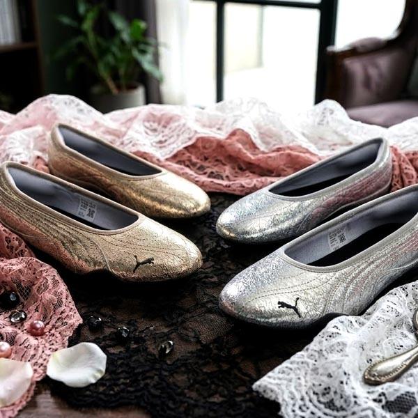 2026春夏新作 送料無料 プーマ レディース パンプス スニーカー PUMA キャッチ ソレイユ バレリーナ メタリック バレエシューズ ローカット 細身 薄底 シューズ 靴 シルバー ゴールド 405843
