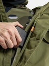 ・ハンドウォーマーポケットの内側に ATM ポケット、フックカン付きの胸ポケット