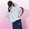 ボクシーなシルエットで、サイドポケットが付いたデザイン。裾のドローコードをお好みで絞ればシルエットの変化を楽しめます。コントラストカラーの左胸のプライマリーロゴ刺繍と袖のラインがアクセントに。カジュアルなボトムスとの相性抜群で、スポーティなカジュアルコーディネートで春の装いを楽しめます。