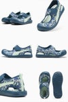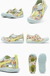 暑い季節を乗り切るためのぴったりなアイテム。着脱が簡単なクイッククロージャー仕様と、元気に走り回ってもつま先を守るトウの仕様が特徴。キュートなプリントもアイキャッチなシューズです。