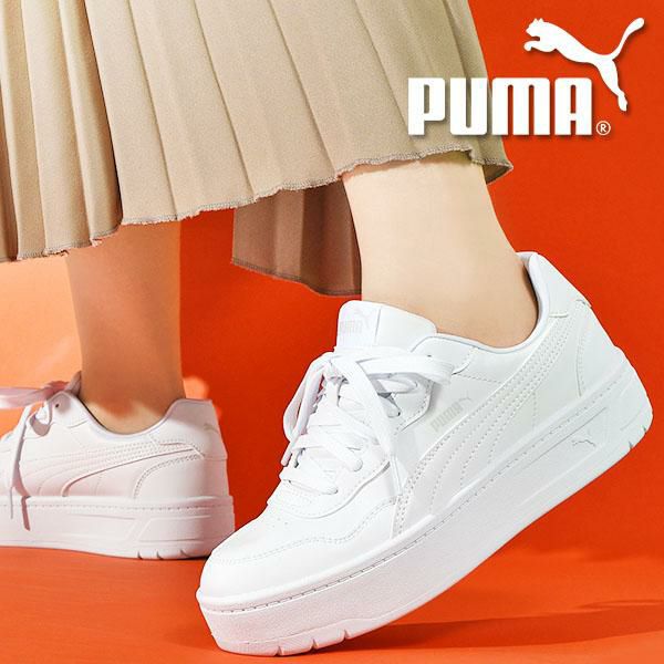 6. 送料無料 プーマ 厚底 レディース スニーカー ヒール高3cm PUMA コート ラリー スカイ ローカット シューズ 靴 オールホワイト 白スニーカー 2025秋冬新色 400368