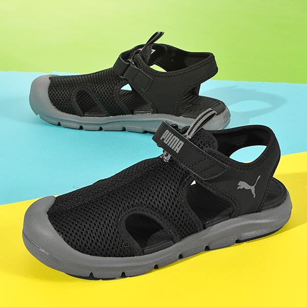 5. 送料無料 プーマ 水陸両用 キッズ サンダル つま先保護 PUMA ファンレーサー サンダル メッシュ V PS ジュニア 子供 男の子 女の子 ビーチサンダル シューズ 靴 子供靴 ベルクロ 海 プール ビーチ 水遊び 海水浴 2026春夏新色 401575
