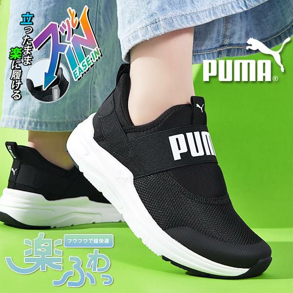 6. 立ったままスッと履ける 送料無料 プーマ レディース スリッポン 厚底 ヒール高4.5cm スニーカー 履き心地抜群 ふわふわインソール PUMA SOFTRIDE ワイヤード2 EASE IN JR イーズイン ローカット シューズ 靴 紐なし 2025秋冬新作 402831