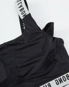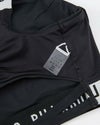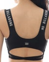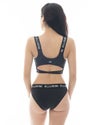 ショルダーストラップやアンダーバスト、ウエストに施されたロゴ入りジャガードバンドがポイント。