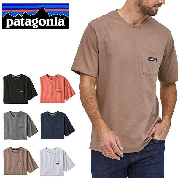 パタゴニア patagonia メンズ 半袖Tシャツ ロゴ パタゴニア Patagonia メンズ・P-6ラベル・ポケット・レスポンシビリティー 半袖Tシャツ 胸ポケット ブラック ホワイト ネイビー ベージュ グレー 20%off