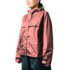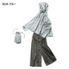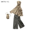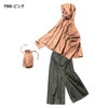 ワイドシルエットでゆったりすっきり重ね着できるレインスーツ●重ね着しやすく、風通りが良いワイドシルエット●折り込み式透明つば●胸元ベンチレーション●タオルなど入れられるインナーポケット付き●後裾反射プリント●パンツはベンチレーション機能のメッシュポケット