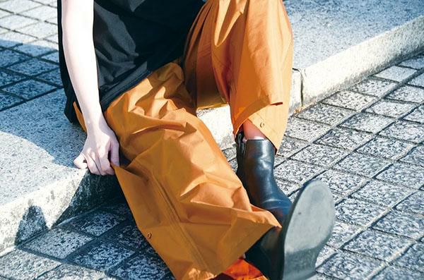 耐水圧10000mmH2O、ワイドシルエットでゆったり・すっきり重ね着できるレインパンツ●重ね着しやすく、風通りが良いワイドシルエット●レインブーツを履いたまま着脱できるワイド裾●ベンチレーション機能を備えたメッシュポケット●裾ボタンをとめればテーパードシルエットになり、自転車乗車時の巻き込み防止に