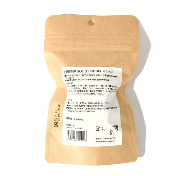 ゆうパケット配送可能! スノボ ワックス PRIME SOLID 20g 生塗り用 ベースワックス ALL temp MATSUMOTOWAX マツモトワックス プライマー パラフィン WAX ベース ホットワックス ワクシング スノボ スノー