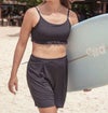 ショーツ一体型のキュロットボトムはハイウエストでお腹周りをスタイリッシュにカバーしてくれます。