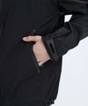 ポリエステル×ポリウレタンの軽量タフタ素材を使用した、3層構造のジップアップフーディージャケット。