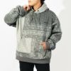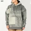 トーンの異なるバンダナ柄を組み合わせ、パッチワークデザインで仕上げたプルオーバーフーディー。
