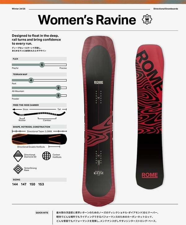 他の画像を見る ROME SDS ローム スノーボード 板 ボード WOMEN'S RAVINE キャンバー ゲレンデ 雪山 レディース 婦人用 144cm のみ 35%off ソールカバー プレゼント 送料無料 スノーボード 板 ROME SDS ローム WOMEN'S RAVINE ラヴィーン レディース 婦人用 スノボ キャンバー オールマウンテン パウダー フリーラン 送料無料 代引決済不可 メーカー希望小売価格 ¥ 96,800 のところ エレスポ価格 ¥ 62,920 税込 在庫切れ 詳細を見る お気に入りに登録する