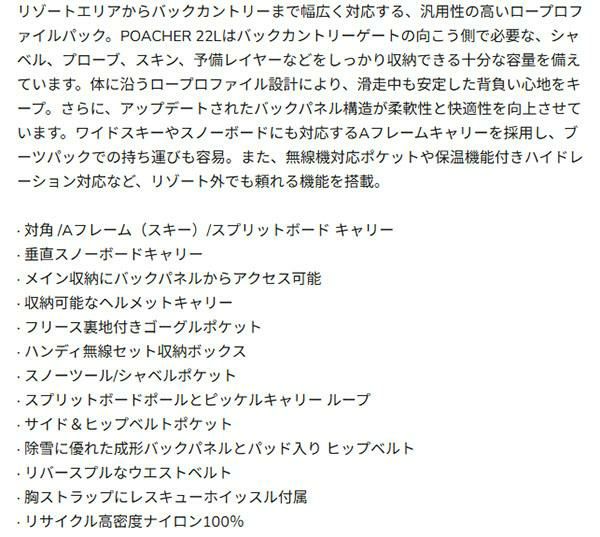 他の画像を見る ダカイン DAKINE メンズ バックパック リュック かばん カバン 鞄 スノーボード スノボ スキー 2025-2026 25-26 25/26 送料無料 バックパック DAKINE ダカイン メンズ POACHER 22L リュックサック ザック 日本正規品 スノーボード スノボ スノー バックカントリー アウトドア バッグ かばん カバン 鞄 BF237202 BF237-202 2025-2026冬新作 25-26 25/26 送料無料 メーカー希望小売価格 ¥ 42,900 のところ エレスポ価格 ¥ 38,600 税込 在庫切れ カートに入れる お気に入りに登録する