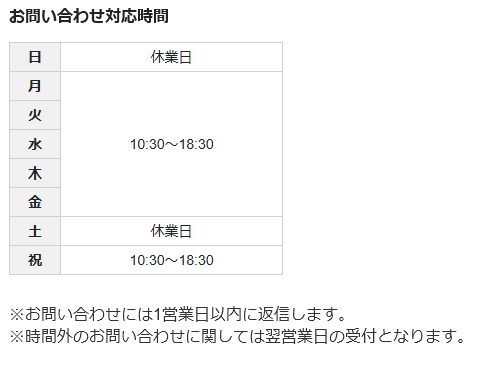 ※休日のお問い合わせにつきましては、翌営業日以降に回答させて頂きます。