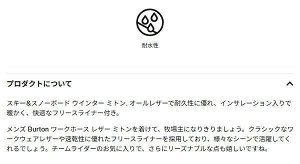 他の画像を見る スノー グローブ BURTON バートン メンズ ミトン 手袋 スノーボード スノボ スキー 2025-2026 25-25 25/26 送料無料 スノーグローブ BURTON バートン メンズ Work Horse Leather Mitt Glove レザー ミトン 手袋 スノーボード スノボ スキー 防寒 2024-2025冬新作 24-25 24/25 10%off 送料無料 メーカー希望小売価格 ¥ 10,780 のところ エレスポ価格 ¥ 9,700 税込 在庫切れ カートに入れる お気に入りに登録する