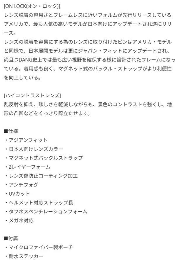 他の画像を見る スノボ ゴーグル Dang Shades ダン シェイティーズ ギア スノーボード フィッシング キャンプ アウトドア メンズ レディース 25-26 25/26 2025-2026 送料無料 ゴーグル Dang Shades ダン シェイティーズ DANG SNOW ON LOCK JP オン ロック ハイコントラスト 日本正規品 ダンシェイティーズ スノボ スノーボード スキー ゴーグル ポーチ付き 2025-2026冬新作 25-26 25/26 メーカー希望小売価格 ¥ 21,450 のところ エレスポ価格 ¥ 19,300 税込 カートに入れる お気に入りに登録する